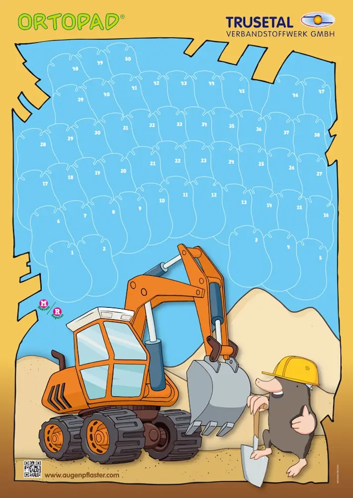 Ke každému balení dětských okluzních náplastí od nás získáte zdarma originální motivační „sběratelský“ plakát, který pomáhá dětem zvládat okluzi s úsměvem. Děti si na plakát každý den lepí použité náplasti a vidí tak svůj pokrok, což je skvělá motivace k pravidelnému nošení.